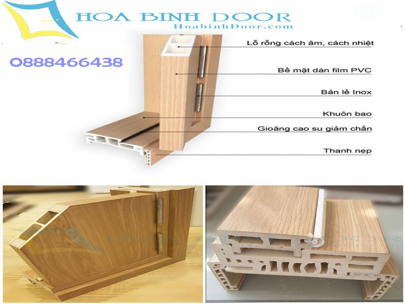• Tấm cửa được làm từ bột gỗ xay mịn với hạt nhựa PVC.