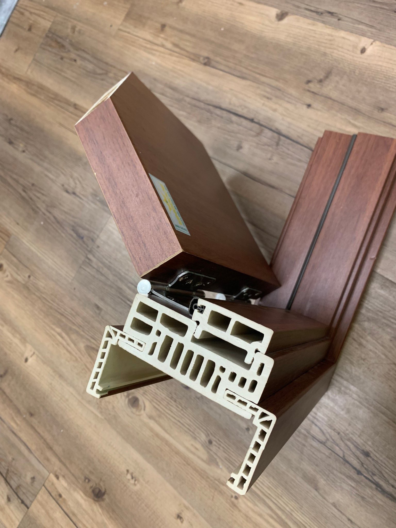 Lõi cánh cửa được làm bằng tấm nhựa gỗ PVC. Đây là tổng hoà của vụn gỗ xay mịn cộng với hạt nhựa PVC nguyên sinh cùng với phụ gia và keo chuyên dụng được chộn lẫn với nhau bằng máy trộn ở nhiệt độ cao và áp xuất cao. Từ đó tạo thành nguyên liệu nhựa gỗ composite.