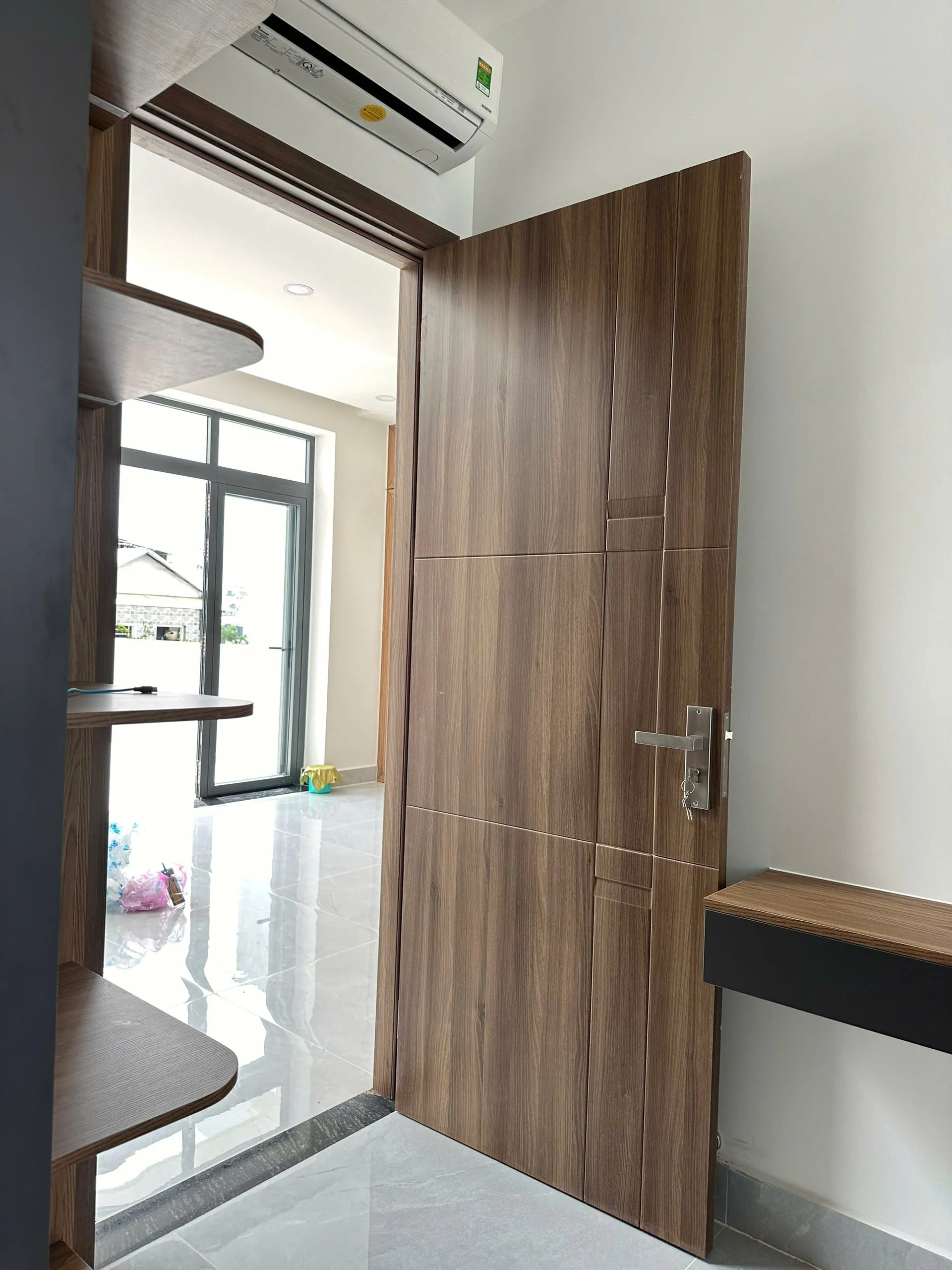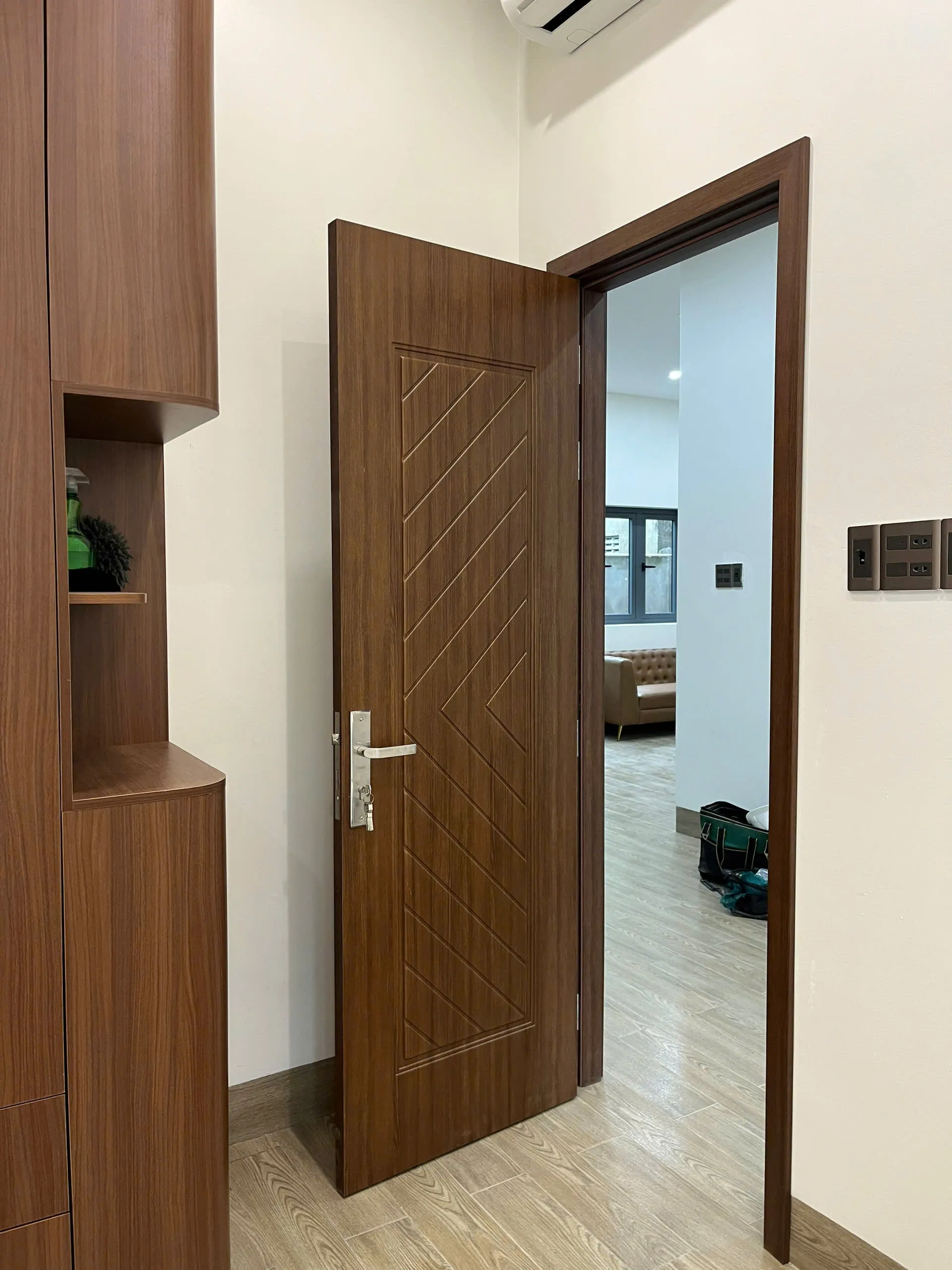 - Màu sắc cửa, thiết kế giống với gỗ nên vẫn tạo được cảm giác như gỗ thật. Lớp màu dày 3mm chống trầy xước , dễ lau chùi và không bị phai màu.